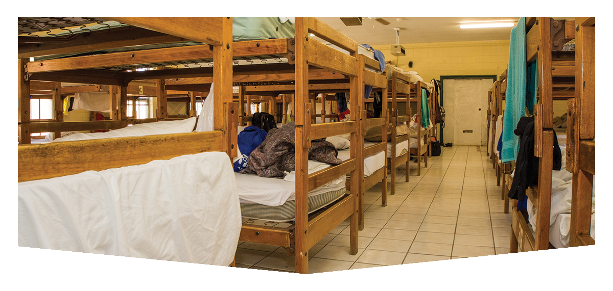 They come for hot meals and soft beds—human comfort for those sent into the wind by economic or emotional calamity.